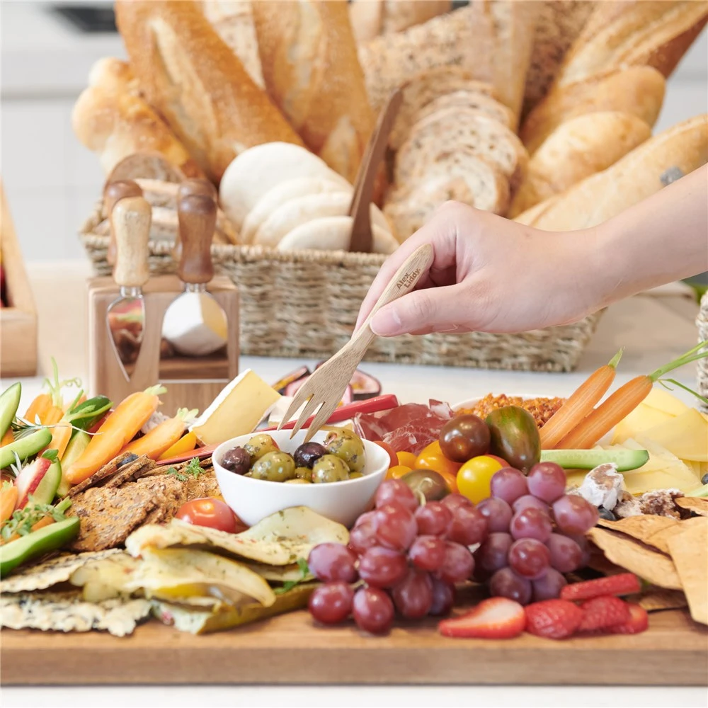 Add a touch of rustic style to your serving platters and table setting with the Alex Liddy Acacia Tapas Forks