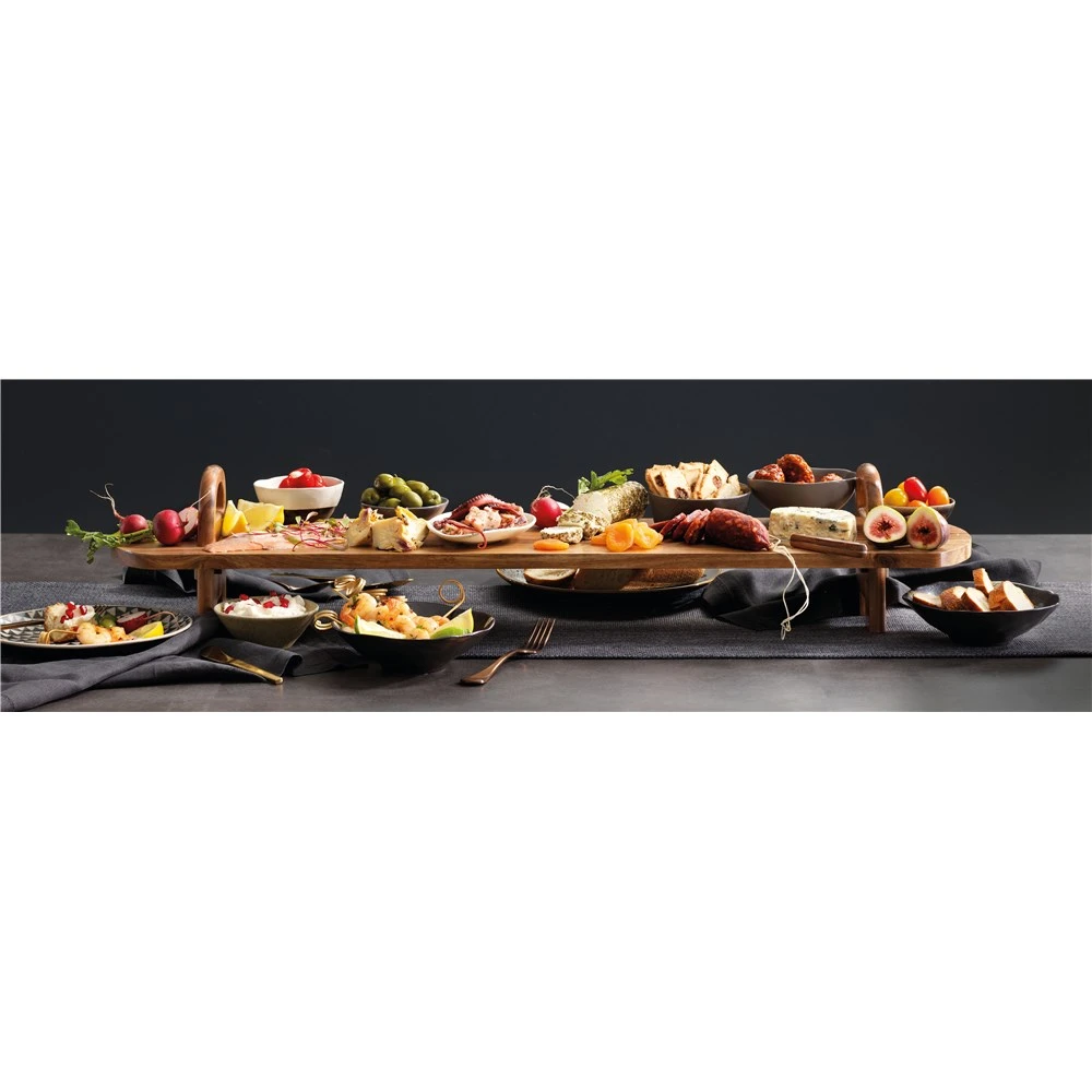 Entertain in style and serve a selection of cheeses, cold meats, fresh fruit and more on the stunning Alex Liddy Acacia Tapas Serving Plank!