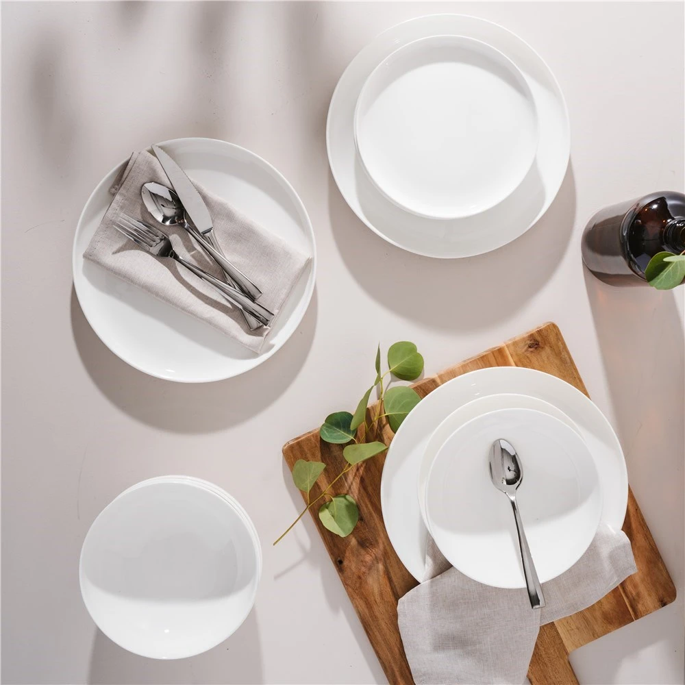 Update your tableware with the Alex Liddy Aquis Coupe 12 Piece Dinner Set, a modern take on a classic, crisp white table setting