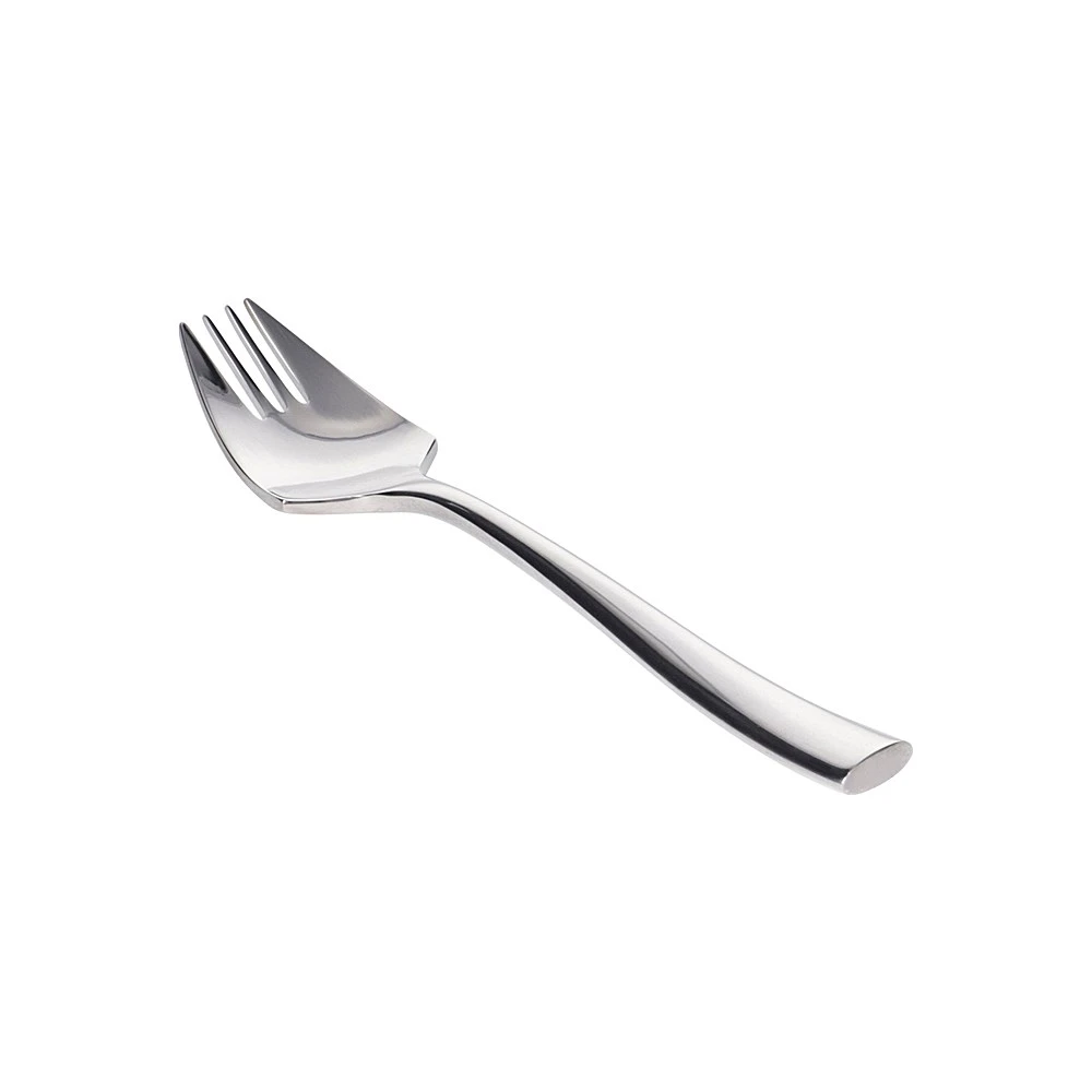 - Four-tine head with a wide spoon-like shape that is perfect for scooping up a variety of foods and appetisers
