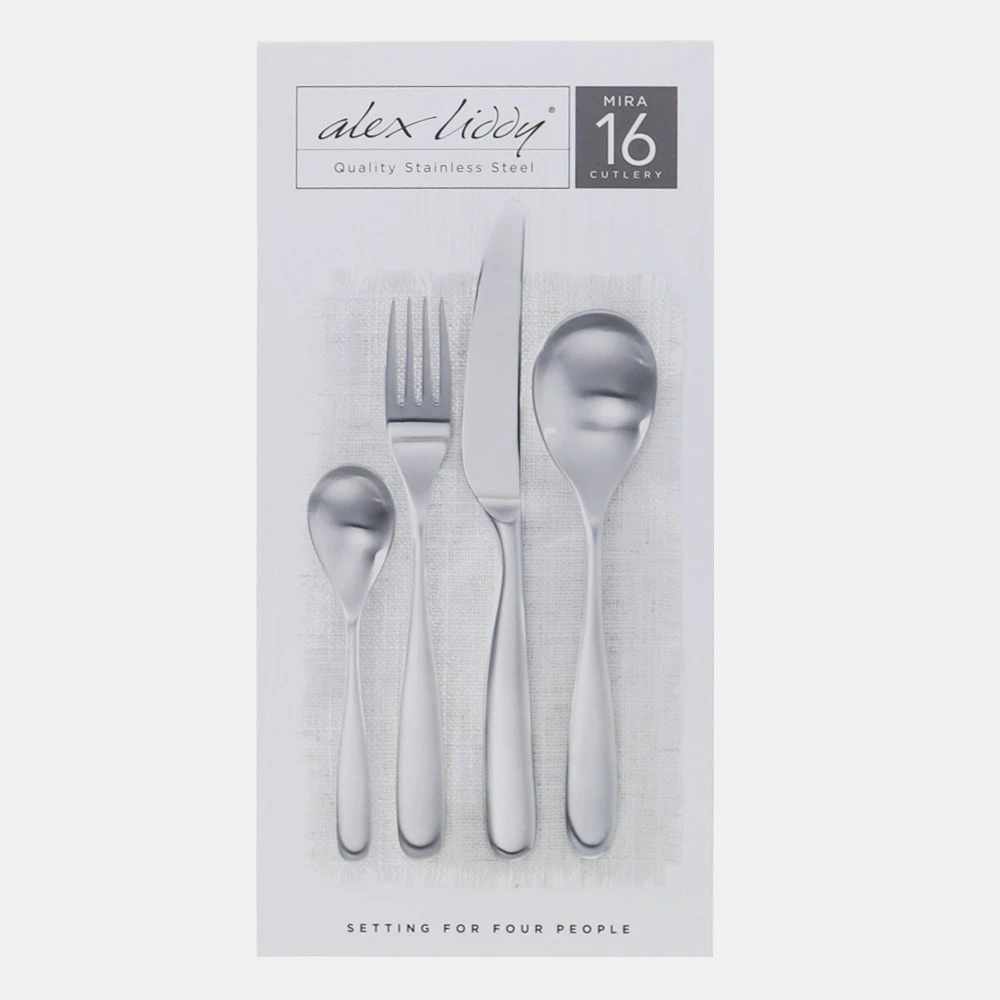 Bring a touch of classic style and quality to your dining table with the quality stainless steel Mira 16-Piece Cutlery Set by Alex Liddy!