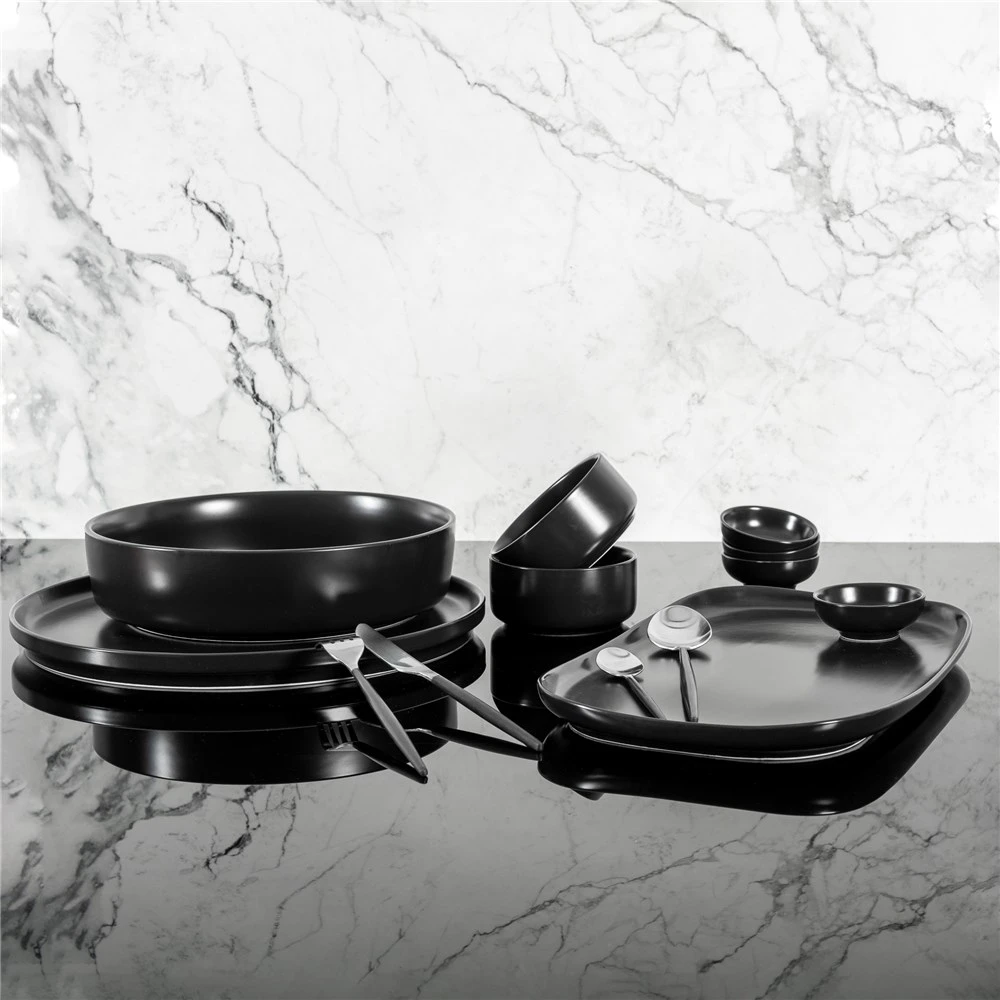 - Bold black colourway finished in a sleek matte glaze is perfect for pairing with bold accent pieces or crisp whites