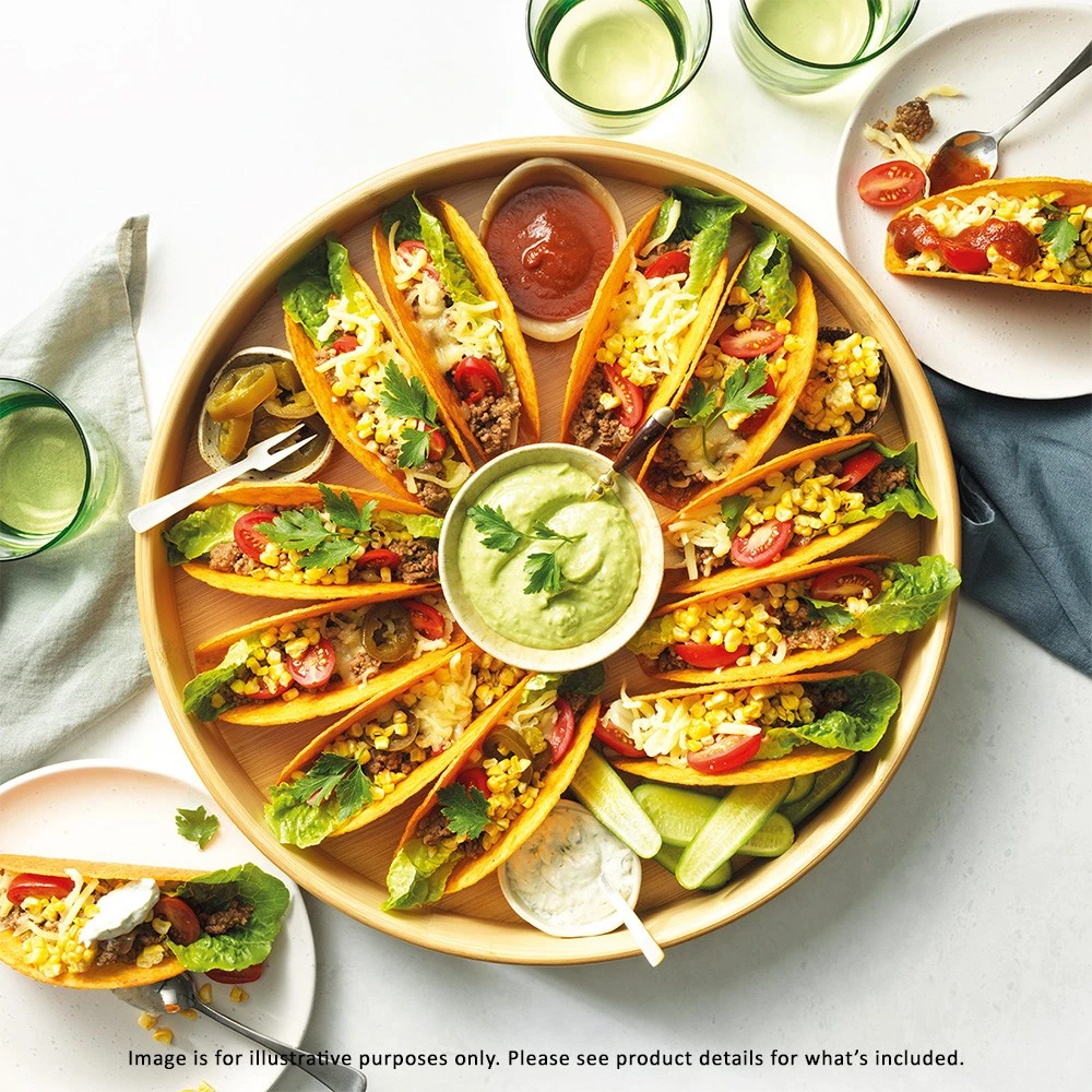 Add a touch of high-class style to every event by serving a selection of canapes and treats on the Ambrosia Karira Bamboo Round Serving Tray