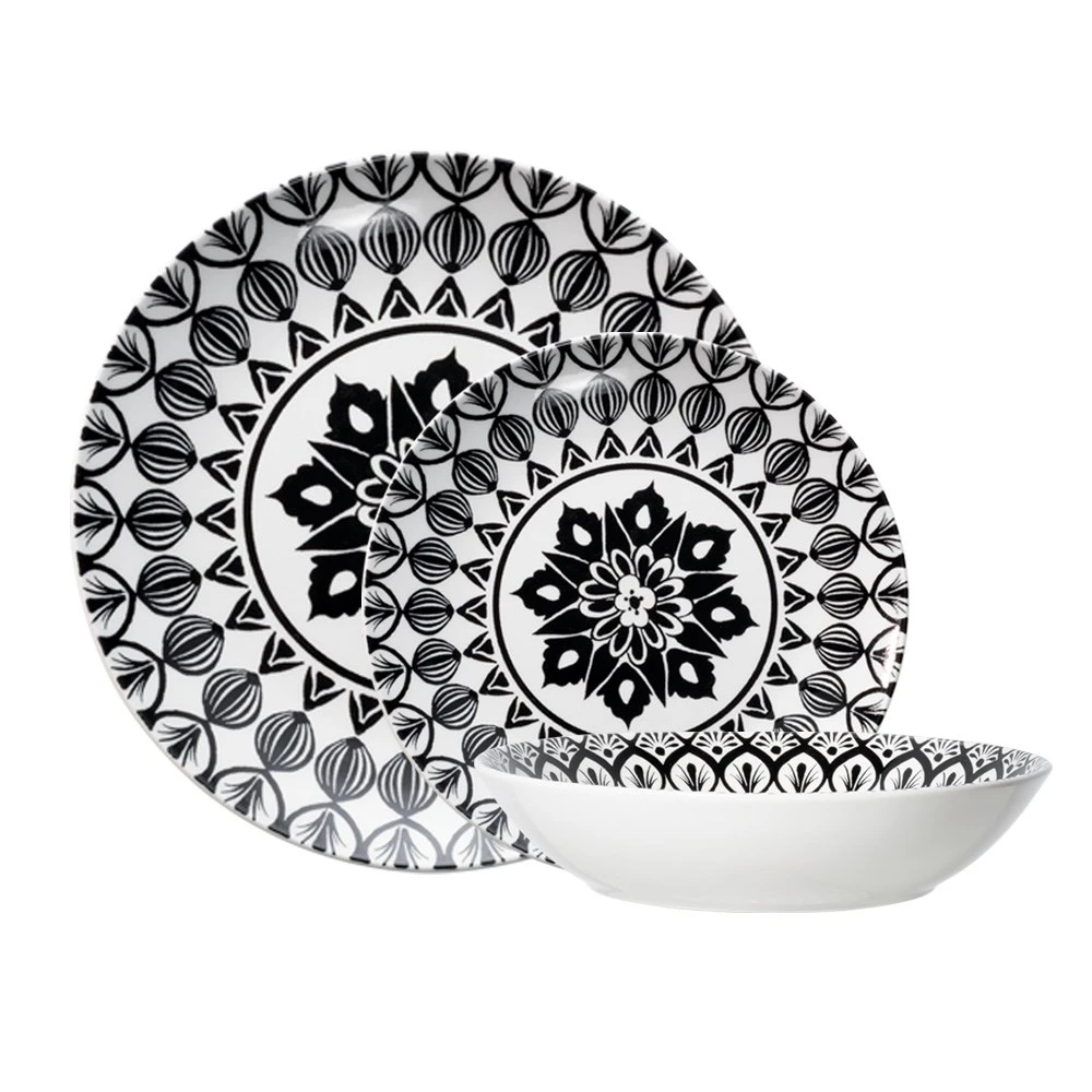 The Ambrosia Lena II Dinner Set is a great way to upgrade your dining experience. This set provides a refined touch to the table and is suitable for both casual everyday meals and formal celebrations. It is composed of high-quality porcelain for long-lasting durability and appeal. With its unique Aztec black and white pattern, this dining set is a fantastic backdrop for your wonderful culinary delights. It has nicely designed plates that are perfect for plating your masterpieces and can comfortably accommodate a group of four. The Ambrosia Lena II 12 Piece Dinner Set, presented in a nice box, makes a great gift for housewarmings, birthdays, and other special occasions.