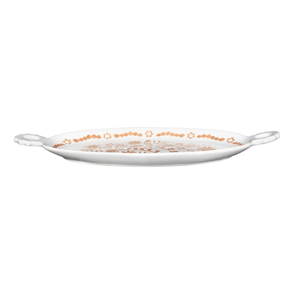 With its charming detail-filled design, Ecology’s Nori Loop Platter Red 41cm is a stunning part of the Nori teatime collection. Designed in Australia by textile designer and illustrator Sarah Strickland, the Ecology Nori Loop Platter Red 41cm features a floral seaweed design that is silk screen printed onto a speckled, milk-coloured, glazed stoneware base. In contrast to their rich, clay-hued tones, a hand-painted soft-pink glaze highlights the blossoms to create an earthy aesthetic with a unique style and layered texture. The classic, straightforward silhouette of the platter allows the quirky pattern to remain the focal point throughout. The Ecology Nori Loop Platter Red 41cm comes in a stylish, coloured gift box for easy gifting. The Nori collection offers coordinating pieces that create an even more delightful teatime experience.