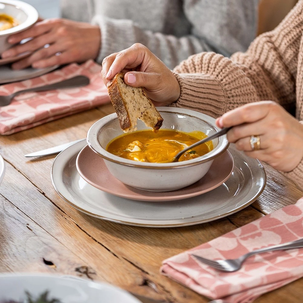 Create an inviting home dining atmosphere with the rustic Ecology Tahoe Side Plate 21cm Nougat. Crafted from quality stoneware for guaranteed resilience, the Ecology Tahoe Side Plate 21cm Nougat is sure to be a much adored, staple piece on your table-top for years to come. Measuring 21cm in diameter, the plate showcases a wonderfully handmade aesthetic with extra wide lips that make a stylish statement and stand-out organic rims. Finished with a transparent neutral gloss glaze, each piece varies slightly in colour and design resulting in one-of-a-kind look that will bring contemporary artisan character to your dining table. Dishwasher and microwave friendly for your convenience, pair the Ecology Tahoe Side Plate 21cm Nougat with matching Tahoe dinner plates, bowls and mugs for a beautifully coordinated look. Please note this item must be purchased as a multiple of 4.