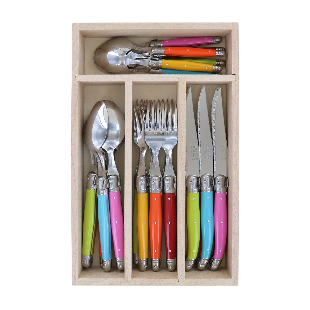 - Moulded resin handles in bright rainbow colours are each adorned with the trademark Laguiole bee