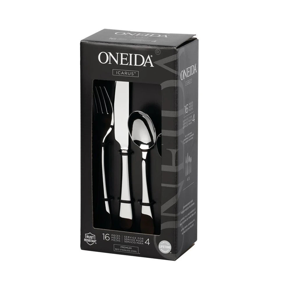 Bring graceful, contemporary charm to the tabletop with the Oneida Icarus 16 Piece Cutlery Set