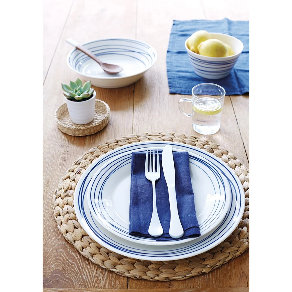 Relaxed vibes inspired by coastal colours and textures are brought to your table with the Royal Doulton Pacific Set of 6 Dinner Plates 28cm Mixed. Adorned with a variety of six different creative patterns in a stunning inky blue hue that burst out from a bright white background, the Royal Doulton Pacific Set of 6 Dinner Plates 28cm Mixed will totally transform your dining space with their refreshing aesthetic. These generously sized dinner plates are perfect for enjoying delicious home cooked meals and can hold their own in both every day and more formal dining settings. With a superior quality porcelain construction, the plates are highly resistant to chips and cracks to endure frequent use and are dishwasher friendly for ultimate cleaning convenience. The beautiful Royal Doulton Pacific Set of 6 Dinner Plates 28cm can be completed with other coordinating items from the extensive Pacific collection and make a fabulous gift on the occasion of housewarmings, weddings and other special milestones.