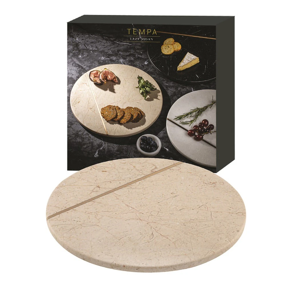 The beautiful Tempa Emerson Lazy Susan Champagne takes centre stage on the tabletop in any setting. Overflowing with luxury style, and not to mention entertaining practicality, the Tempa Emerson Lazy Susan Champagne features an inbuilt spinning base ensuring no one misses out on the decadent treats being served. Handcrafted from high-quality marble in a stunning champagne beige colourway, this must-have piece of serve ware boasts unique golden brass details for a touch of elegant decadence. With a food-safe lacquer to prevent stains, the Lazy Susan can be topped with an array of mouth-watering nibbles and canapes and effortlessly spun around to satisfy everyone at the table. Enhance your own entertaining collection, or give the fabulous Tempa Emerson Lazy Susan Champagne to a friend or loved one for a memorable gift they’ll cherish for years to come.
